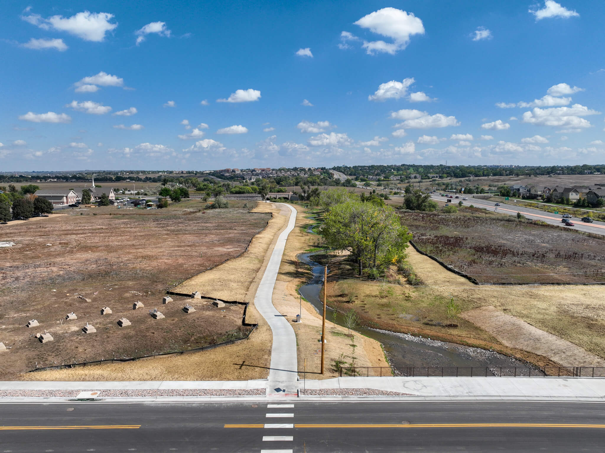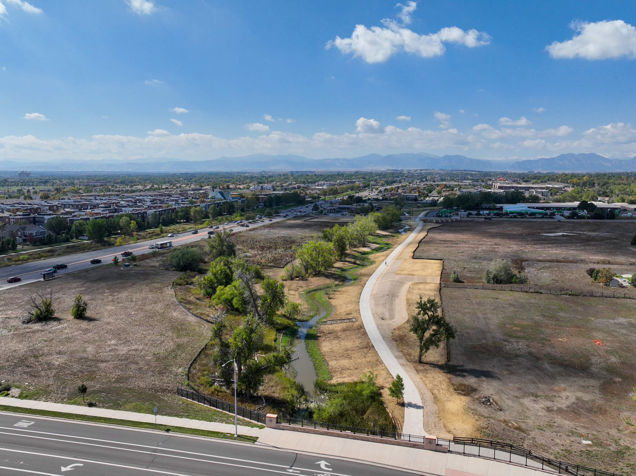 The Nissen Reservoir Drainageway project is a crucial initiative undertaken by the City and County of Broomfield in partnership with the Mile High Flood District (MHFD). With Naranjo Civil Constructors as the prime contractor and ICON as the design engineers, this project aims to enhance flood control and drainage infrastructure from Tennyson Street to just upstream of Lowell Blvd. The project addresses a narrow channel and wide floodplain impacting local businesses and public safety. The team will protect the community and ensure a safer, more resilient future by improving drainage capacity and preventing flooding during significant precipitation events. The collaborative effort will mitigate the risk of flood damage, enhance public safety by preventing the overtopping of Perry Street, and comply with environmental regulations to preserve local ecosystems. This partnership demonstrates a solid commitment to sustainable infrastructure and community well-being.