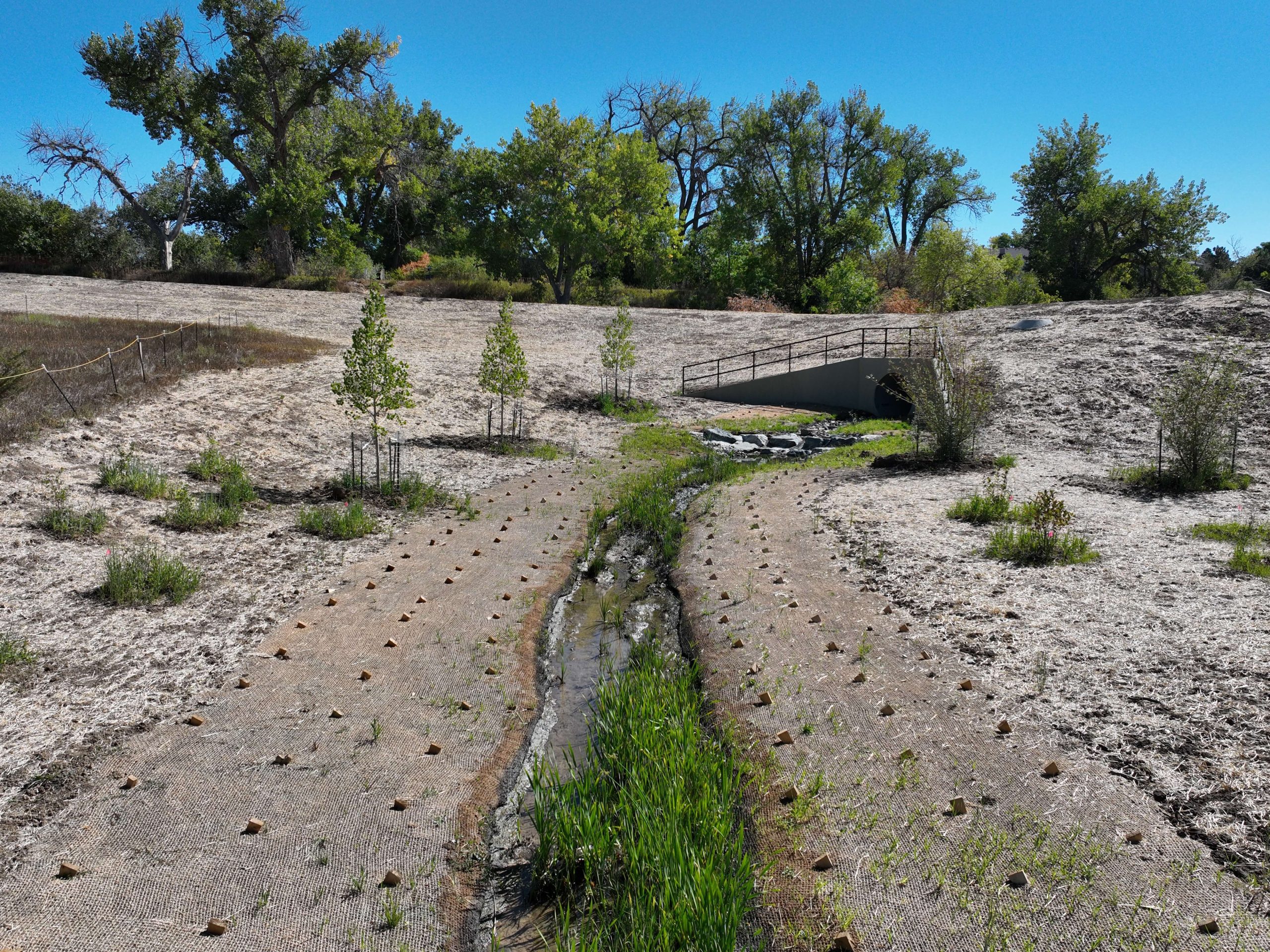 The Jackass Gulch at High Line Canal project is an important initiative aimed at addressing critical pond and channel stabilization needs in the City of Littleton, Colorado. This effort is focused on enhancing the resilience of Jackass Gulch by stabilizing the waterway and implementing flood mitigation measures. These improvements are essential to safeguarding the local environment and infrastructure, while also contributing to the long-term sustainability and safety of the surrounding community.