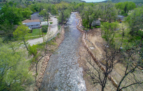 Naranjo Civil Constructors has decades of experience working in Colorado waterways and understands how to navigate sensitive environments minimizing damage to in-situ ecosystems. Constructing man-made improvements and retaining their “organic” appearance requires specialized teams. Naranjo Civil is an industry leader in combining natural resource management and river restoration. A recent project took the expanse of the South Platte River and channelized it to a more environmentally sound waterway, adding vegetated banks and secondary overflow channels to dynamically accommodate fish and fowl. Naranjo has built a number of natural features into riverine environments across Colorado while preserving existing habitats including fish ladders, glides, pools, lunker boxes, and constructed stream bank features.