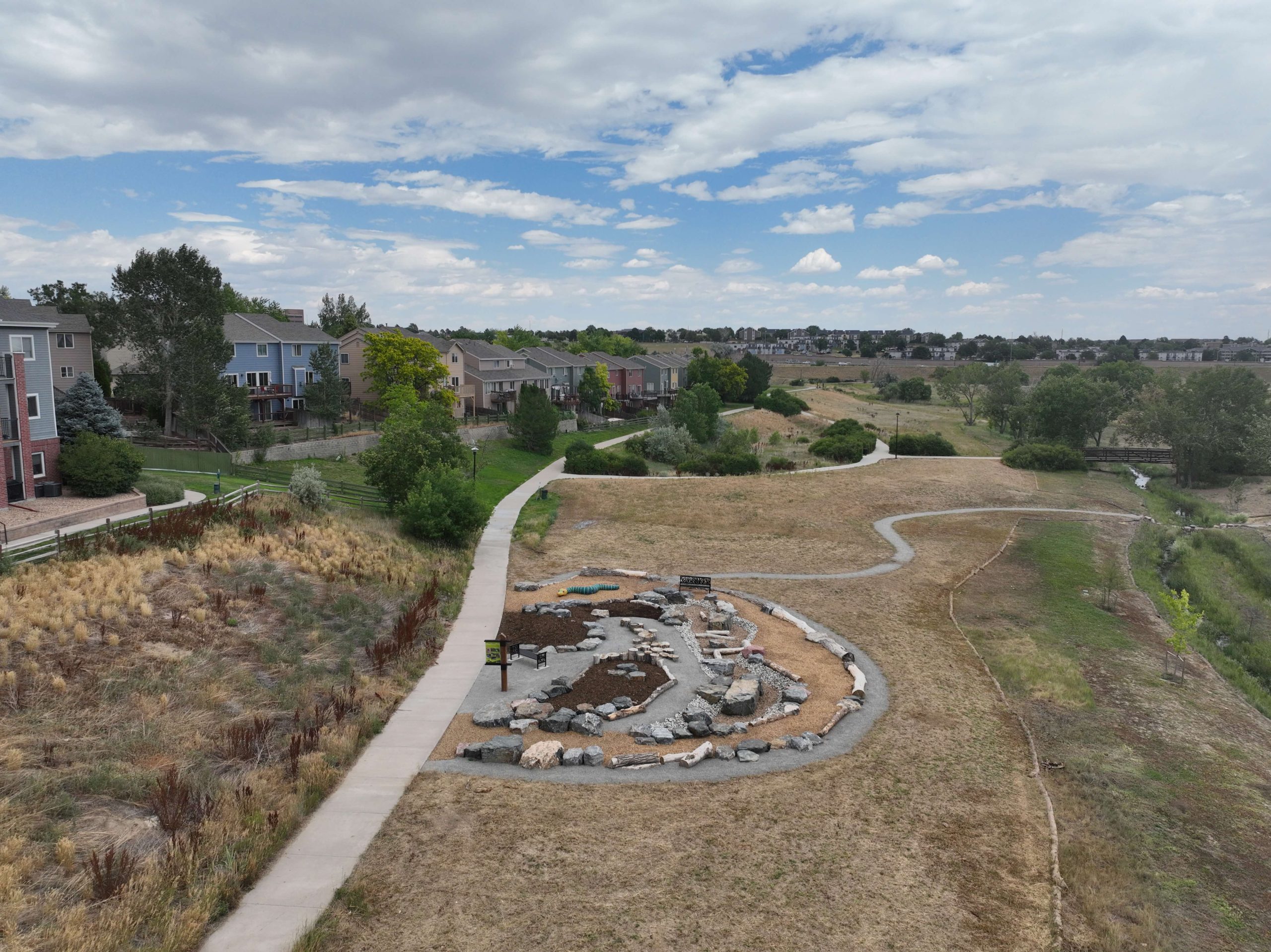 This project is specific to a nearly half mile stretch of channel improvement work beginning in Fall 22’ and being completed in Spring 23’. Along with our partners, we will be building a channel stabilization and realignment project from approximately Thornton Parkway east to where Niver Tributary M meets Niver Creek on the east side of Niver Open Space. The purpose of the project is to protect underground utility pipes from erosion, reduce the slope of steep banks to create a more natural creek bed, and to promote access to the water.