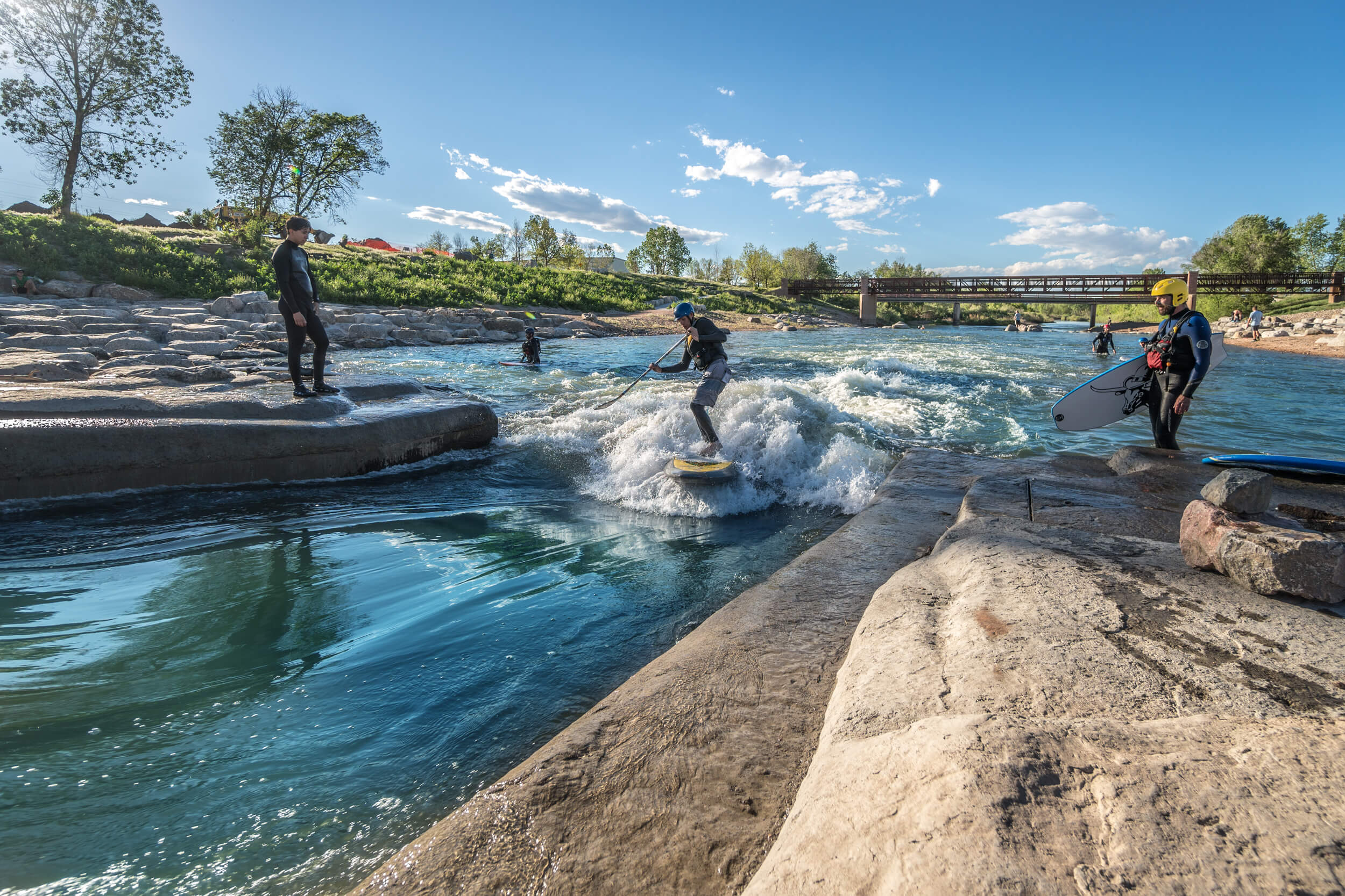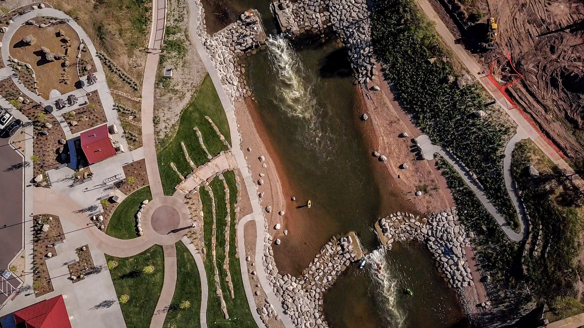 Naranjo Civil has taken many years of river construction expertise and teamed collaboratively with owners to add a recreational component to river projects. Storm water projects often allow compromised waterways to be reinvigorated with a combination of recreation and habitat enhancement to bring people back to the waterway. Development of the South Platte River Run Park is an example of the cutting-edge innovation and Naranjo’s willingness to take risks on new designs. Our team was part of the design process under UDFCD’S project partnering program (CMAR) and participated very early on in the design of Colorado’s only adjustable wave-shaper attraction. The wave shaper in the South Platte River at River Run Park engages long lines of surfers, kayakers, and rafters each and every sunny Colorado day. With a passionate drive to build “legacy” projects, Naranjo civil embraces the opportunity to build especially challenging projects in the volatile environment of a waterway. These recreational feats that are added to river projects display an exponential amount of complexity and detail. It is this same attention to complexity and detail that our clients will find reflected in our relentless customer service mission and our need to embrace the most challenging projects.